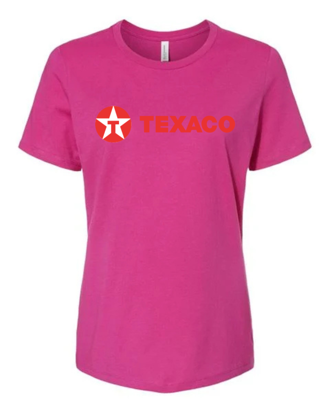 Add a bold vintage touch to your everyday look with this women’s crewneck T-shirt featuring the iconic Texaco logo. Designed with a flattering feminine fit, this graphic tee blends classic Americana branding with modern comfort.