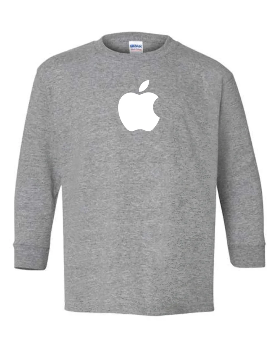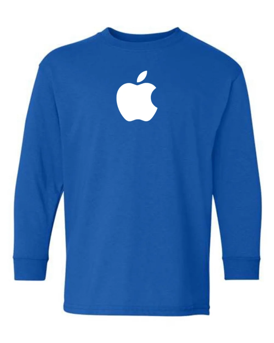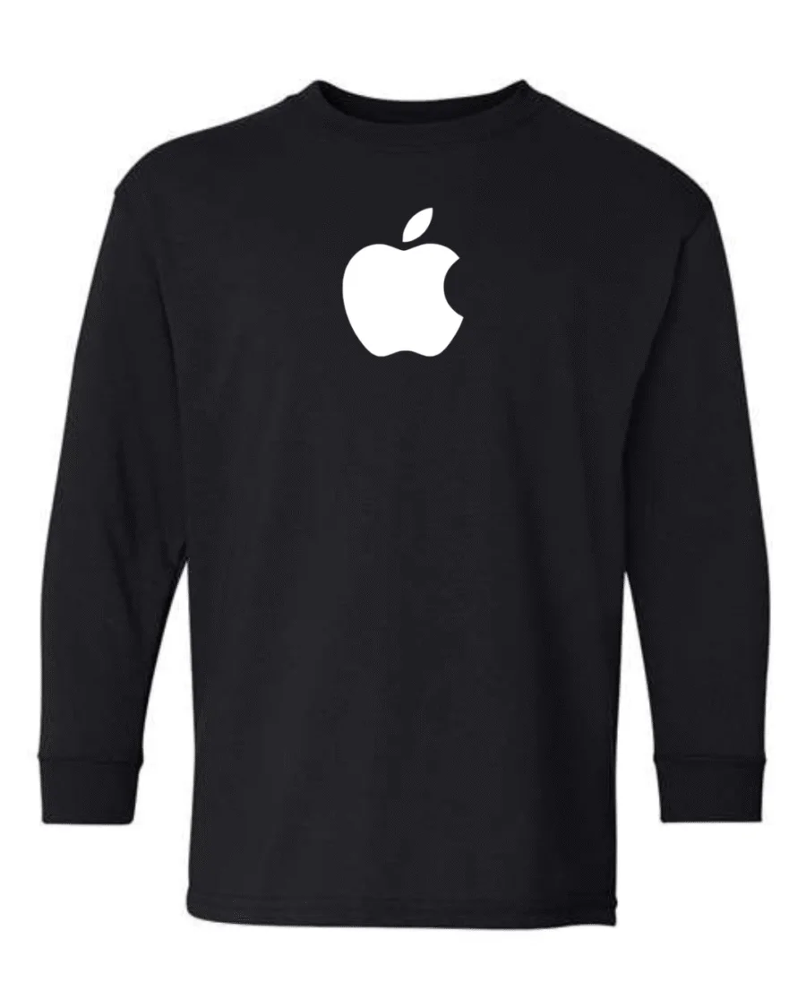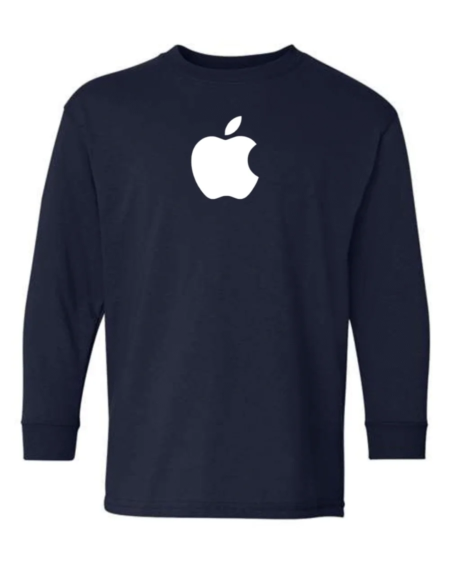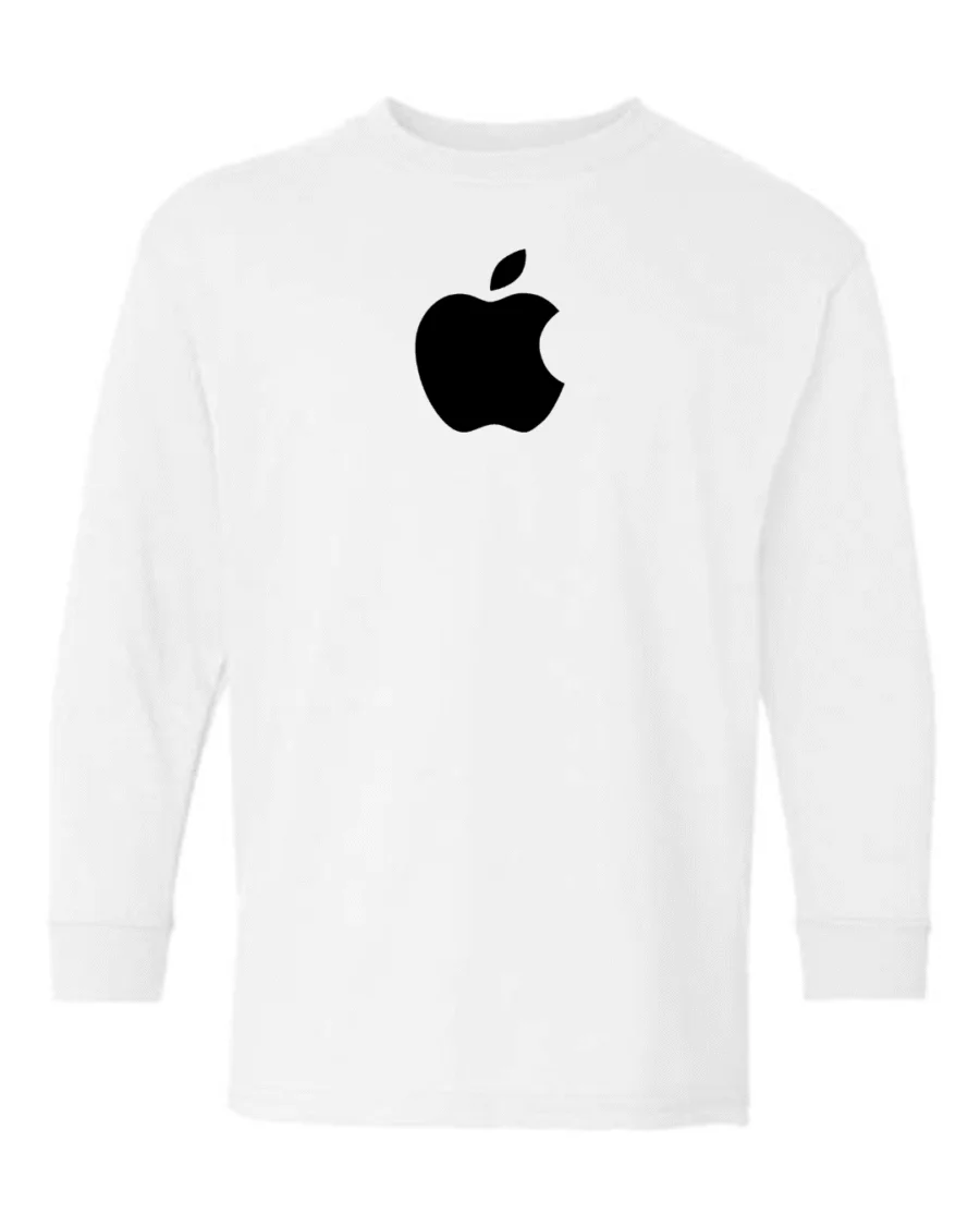 Perfect for young tech fans, this youth Apple logo long sleeve shirt features the iconic Apple symbol on the front for a clean, modern, and instantly recognizable look. Simple yet stylish, this long sleeve tee delivers a minimalist design that pairs effortlessly with everyday outfits.