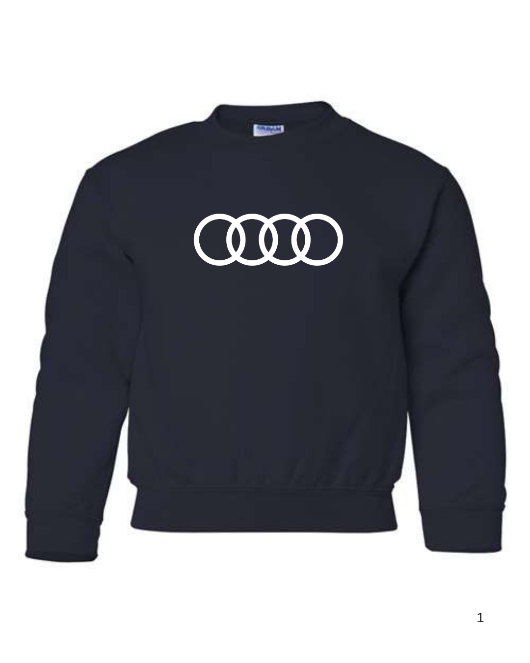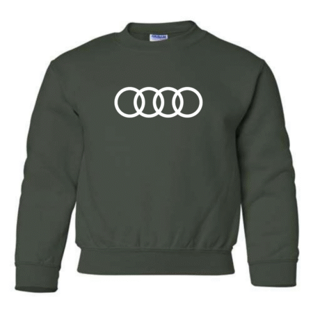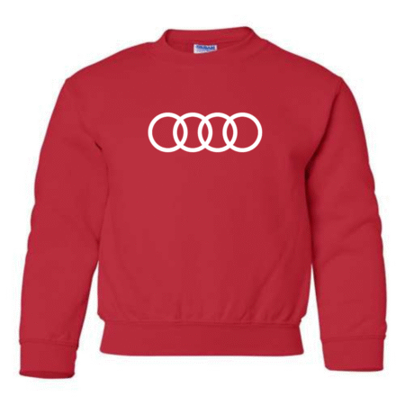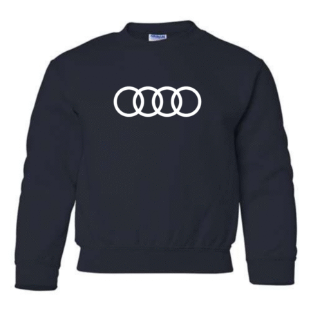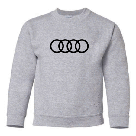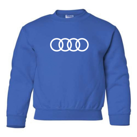 Give young car enthusiasts a sleek, modern look with this Youth Audi Rings Logo Inspired Sweatshirt. Featuring the instantly recognizable four-ring design inspired by Audi, this sweatshirt is perfect for kids who love luxury cars and clean automotive style.