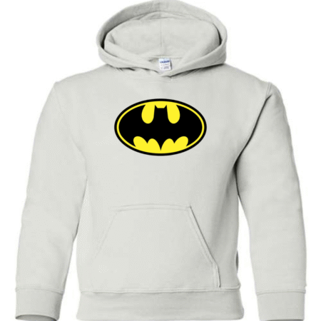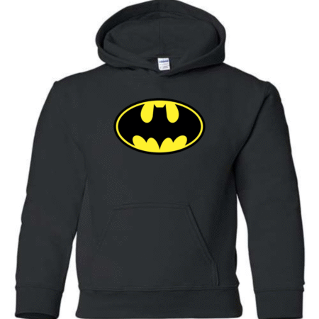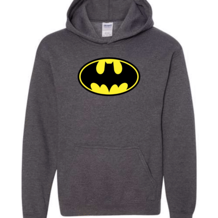 Let kids show off bold superhero style with this Batman-inspired youth hoodie. Featuring an iconic front emblem design, this hoodie is perfect for young fans who love superheroes, comics, and action-inspired streetwear.