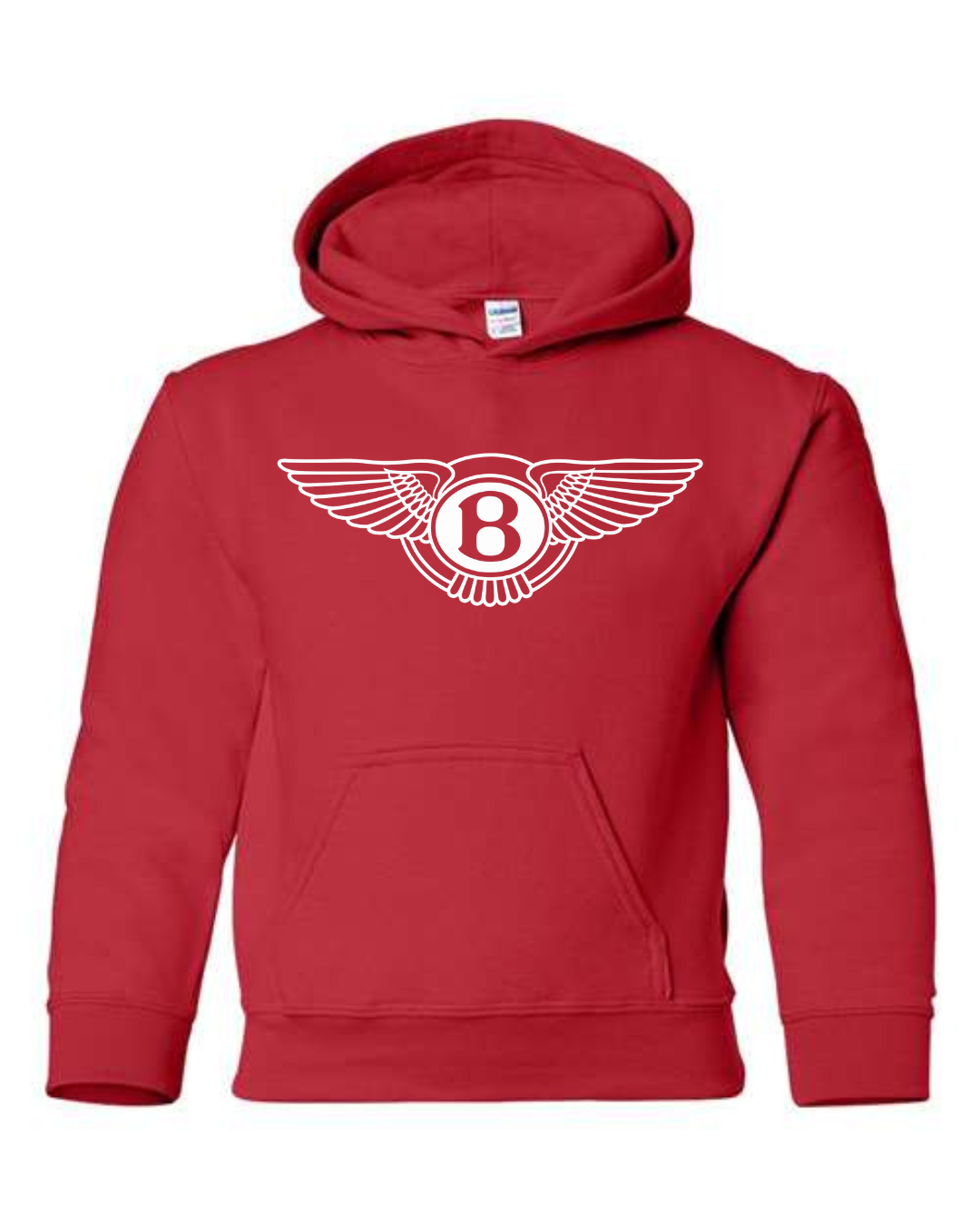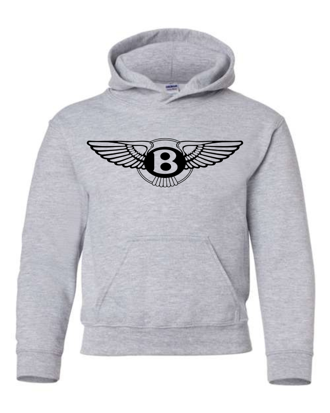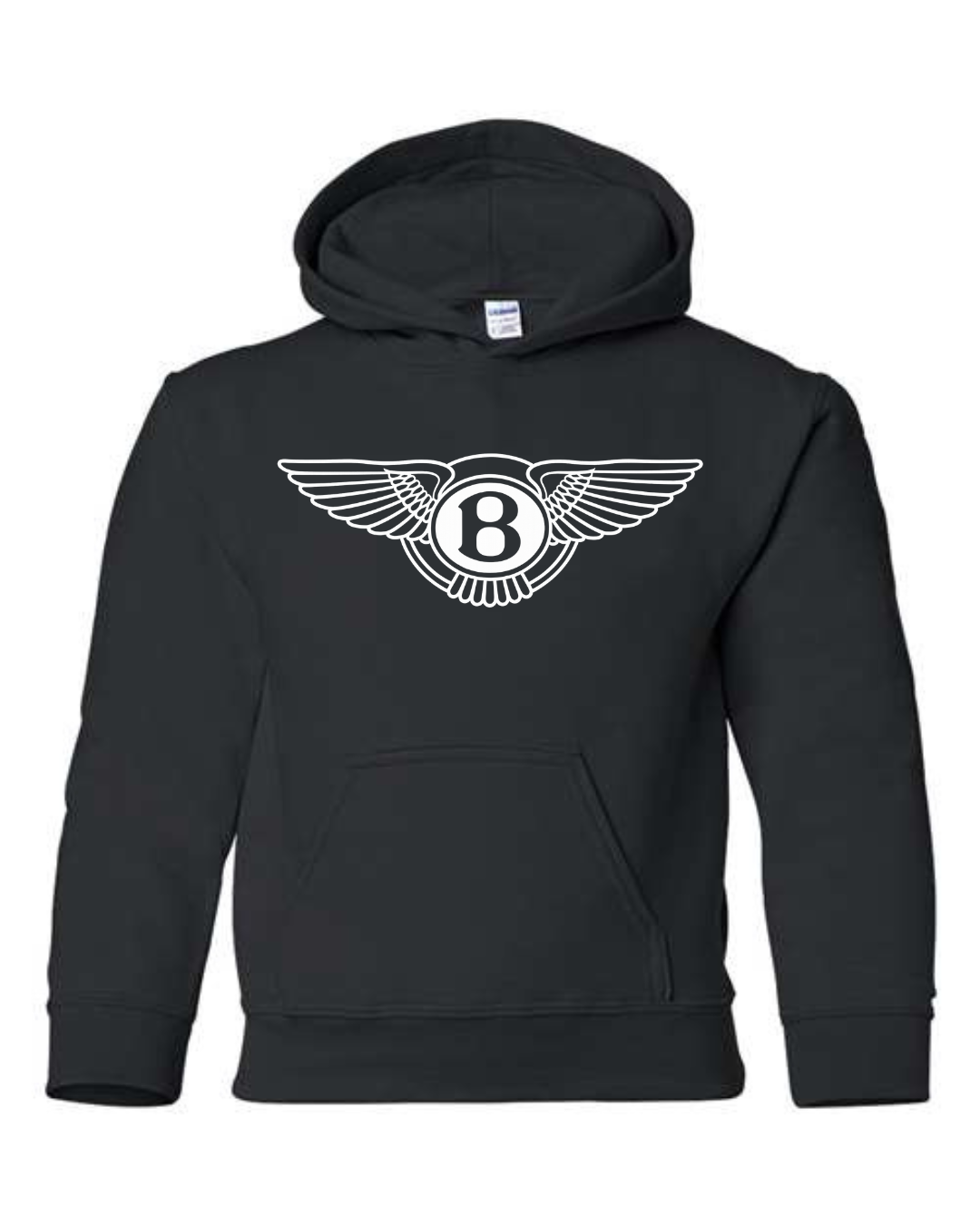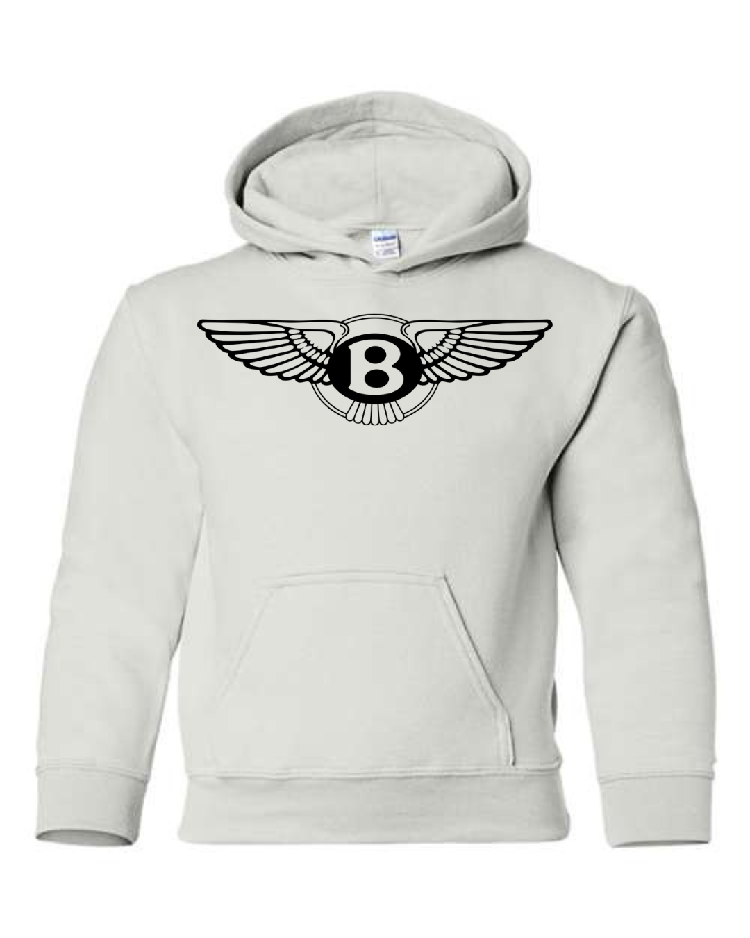 Give young luxury car fans a bold, premium look with this Bentley-inspired youth hoodie. Featuring a striking winged logo design on the front, this hoodie blends iconic automotive style with modern streetwear—perfect for kids who love high-end cars and clean fashion.