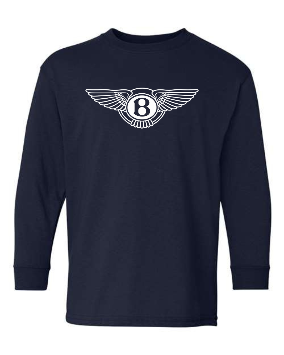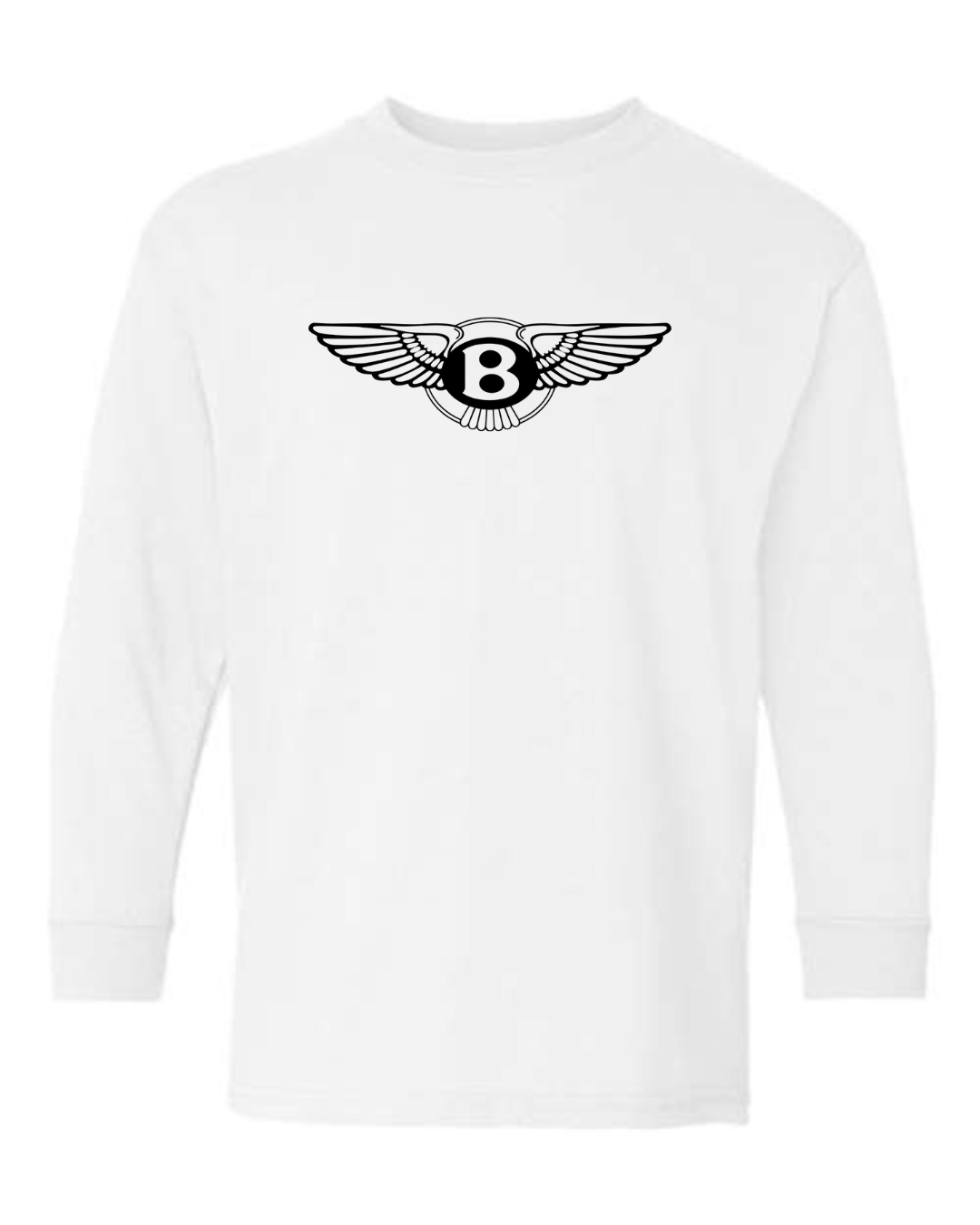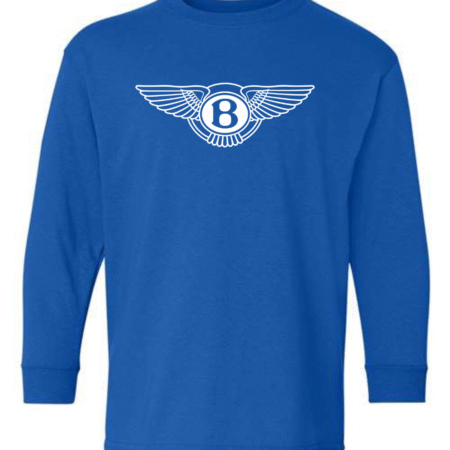 Perfect for young luxury car fans, this youth Bentley Winged B logo long sleeve shirt features the iconic Bentley emblem across the chest for a refined, premium automotive look. Clean and stylish, this long sleeve tee brings high-end car culture into everyday wear.