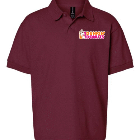 Give your child a fun and polished look with this Youth Polo Shirt featuring the iconic Dunkin’ Donuts logo on the chest. Designed with a classic polo silhouette, this shirt blends everyday comfort with a bold, recognizable brand style.