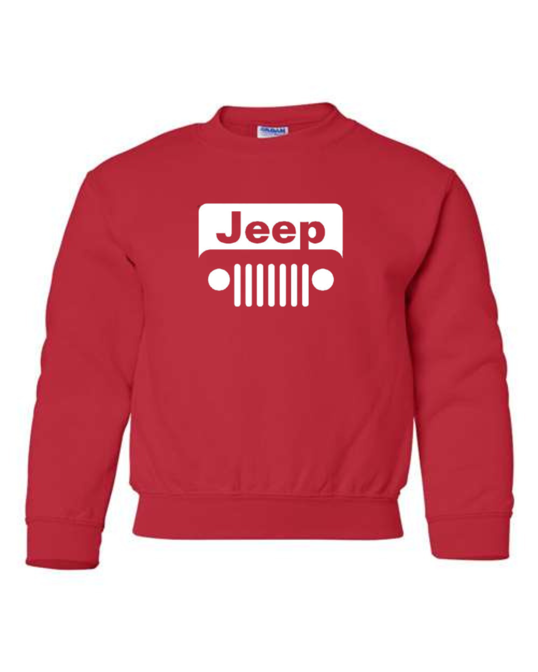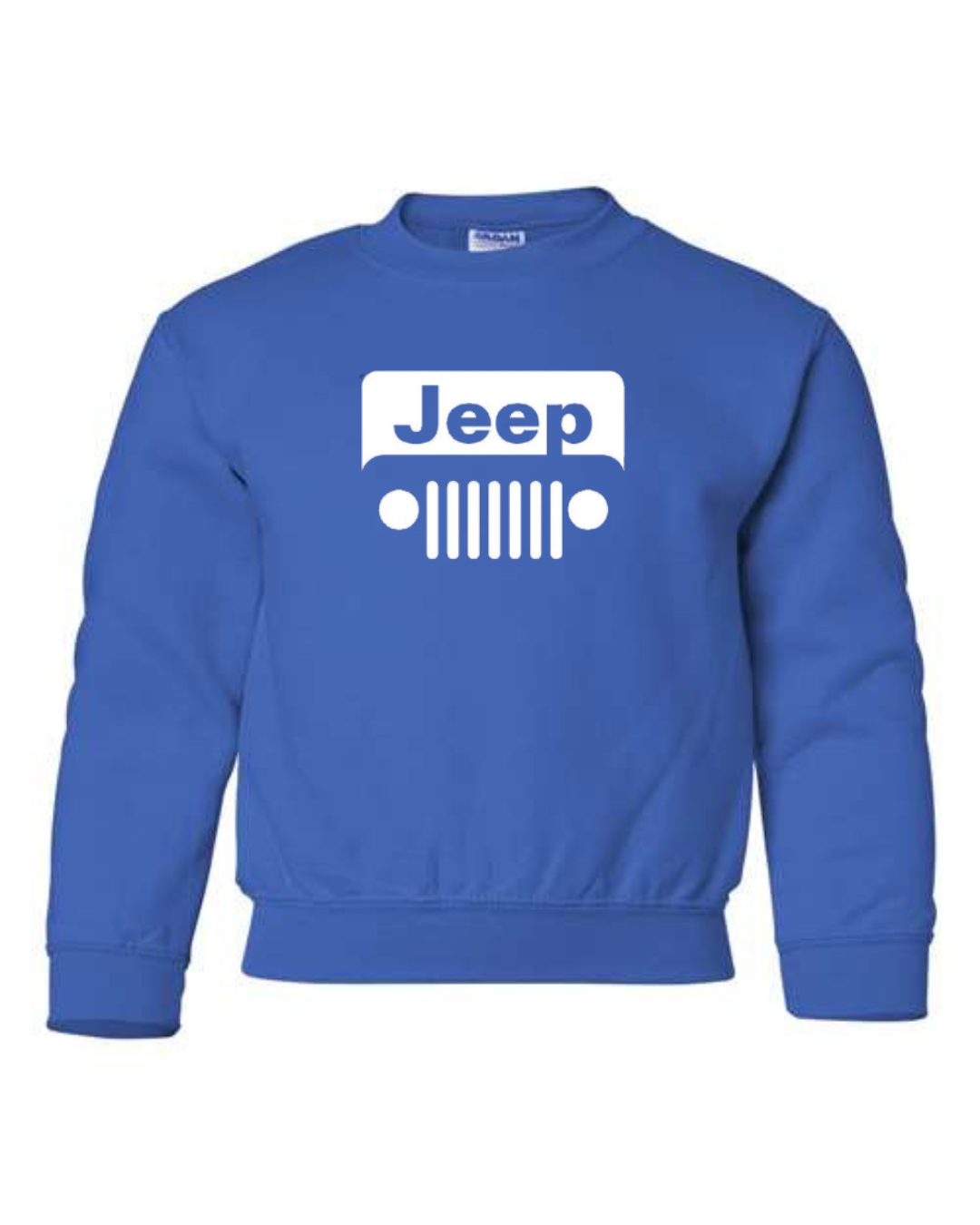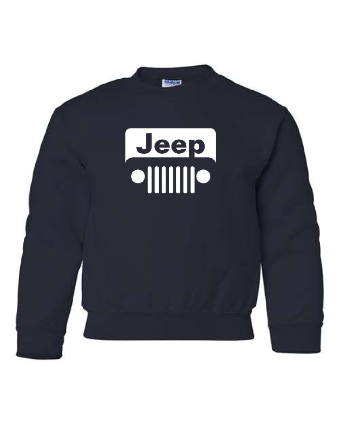 Perfect for young adventure lovers, this Youth Jeep Grill Logo Inspired Sweatshirt features a bold, rugged graphic inspired by Jeep. With its iconic front-grill–style design, this sweatshirt captures classic off-road spirit in a clean, kid-friendly look.