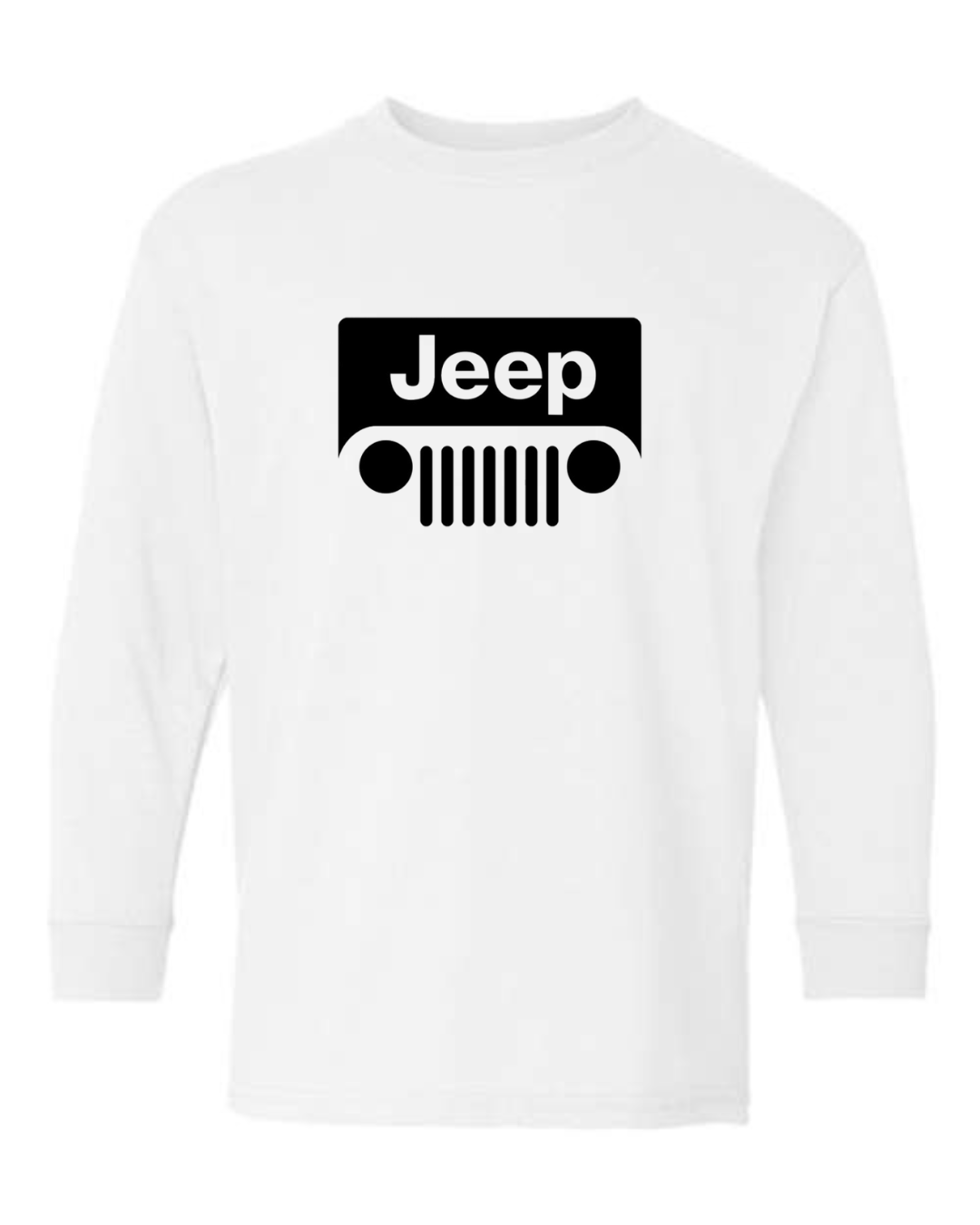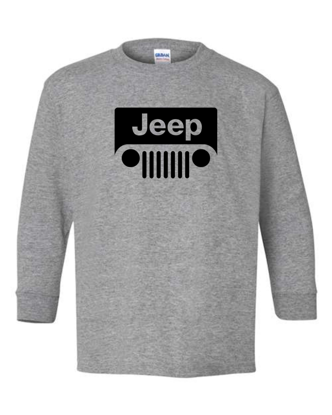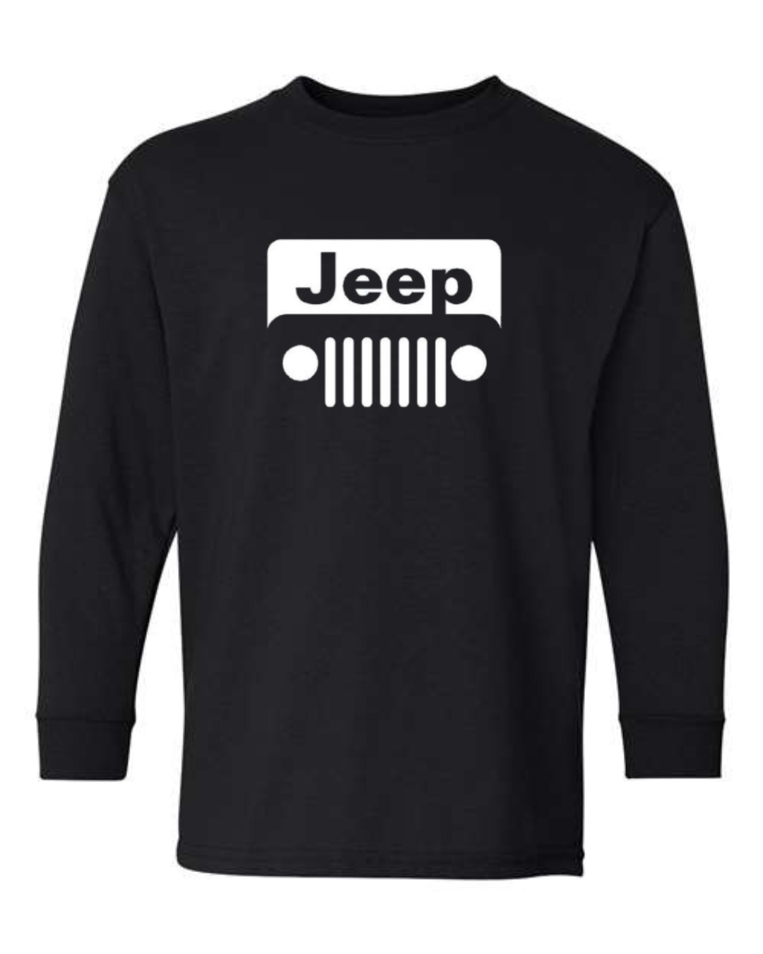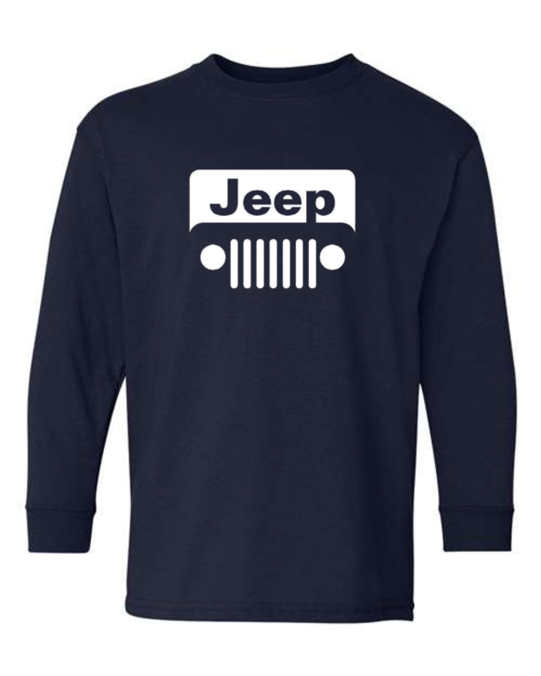 Built for young adventure lovers, this youth Jeep logo long sleeve shirt features the iconic Jeep wordmark with the classic grille design on the front for a bold, rugged look. Perfect for everyday wear, this long sleeve tee represents freedom, exploration, and off-road style.