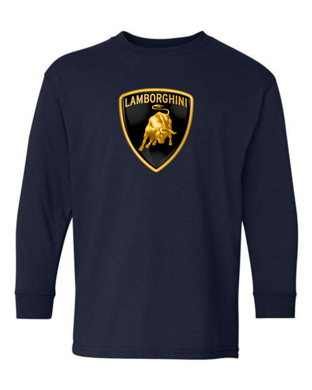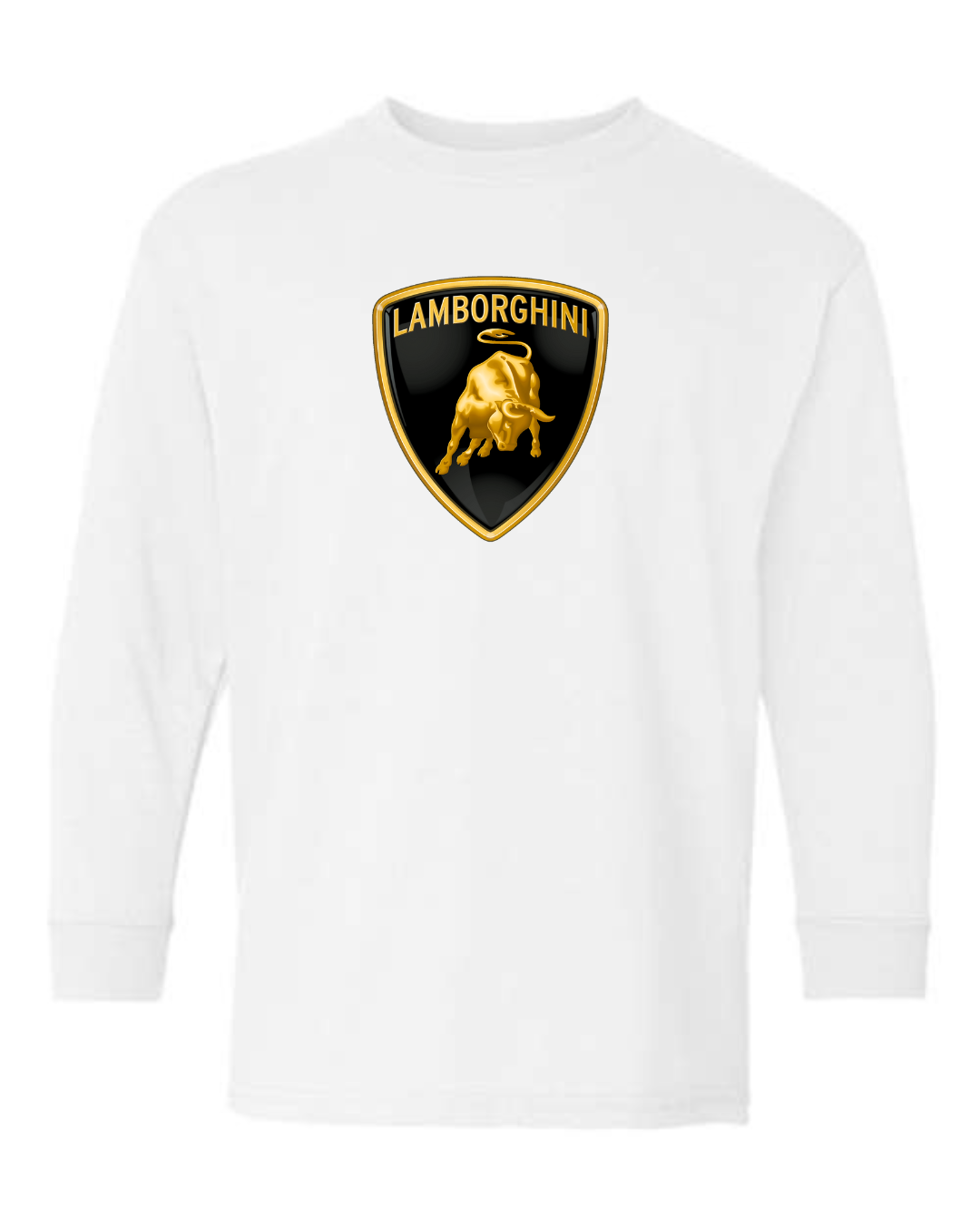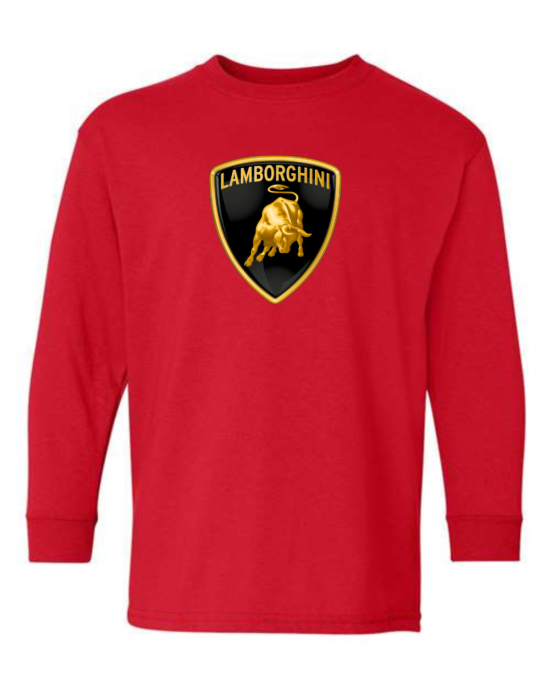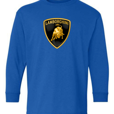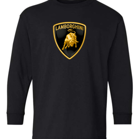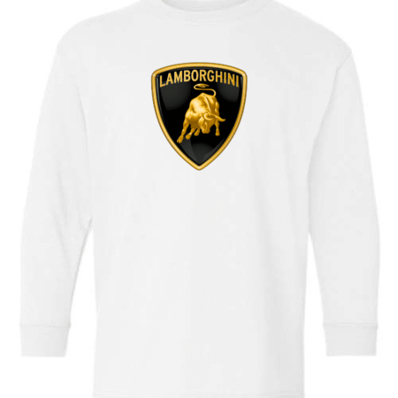 Bold and powerful, this youth Lamborghini logo long sleeve shirt features the iconic Lamborghini shield with the charging bull emblem on the front for a premium supercar-inspired look. Perfect for young car lovers who admire speed, luxury, and high-performance design, this long sleeve tee makes a strong style statement.