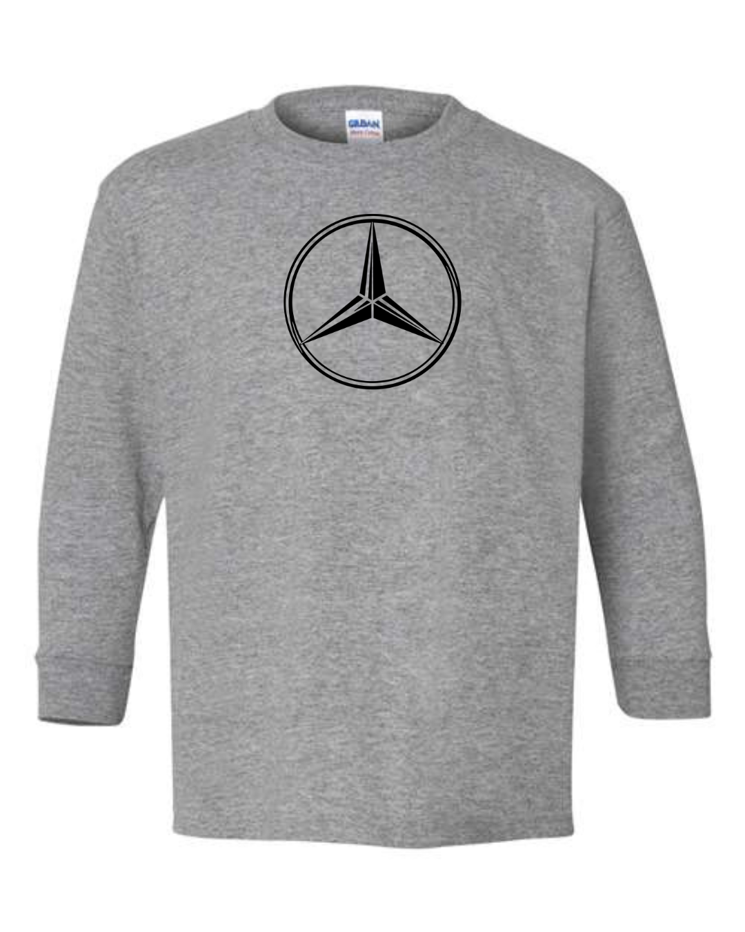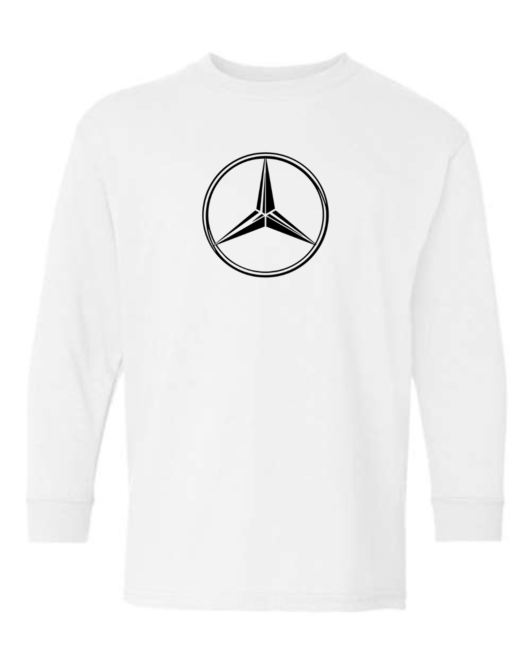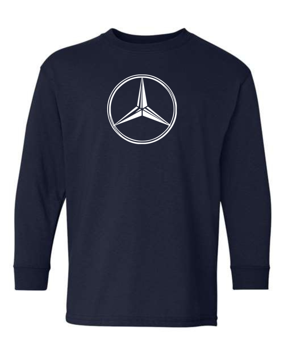 Perfect for young luxury car fans, this youth Mercedes-Benz logo long sleeve shirt features the iconic three-pointed star emblem on the front for a sleek, premium automotive look. Clean and timeless, this long sleeve tee is ideal for everyday wear while showing appreciation for one of the world’s most iconic luxury car brands.