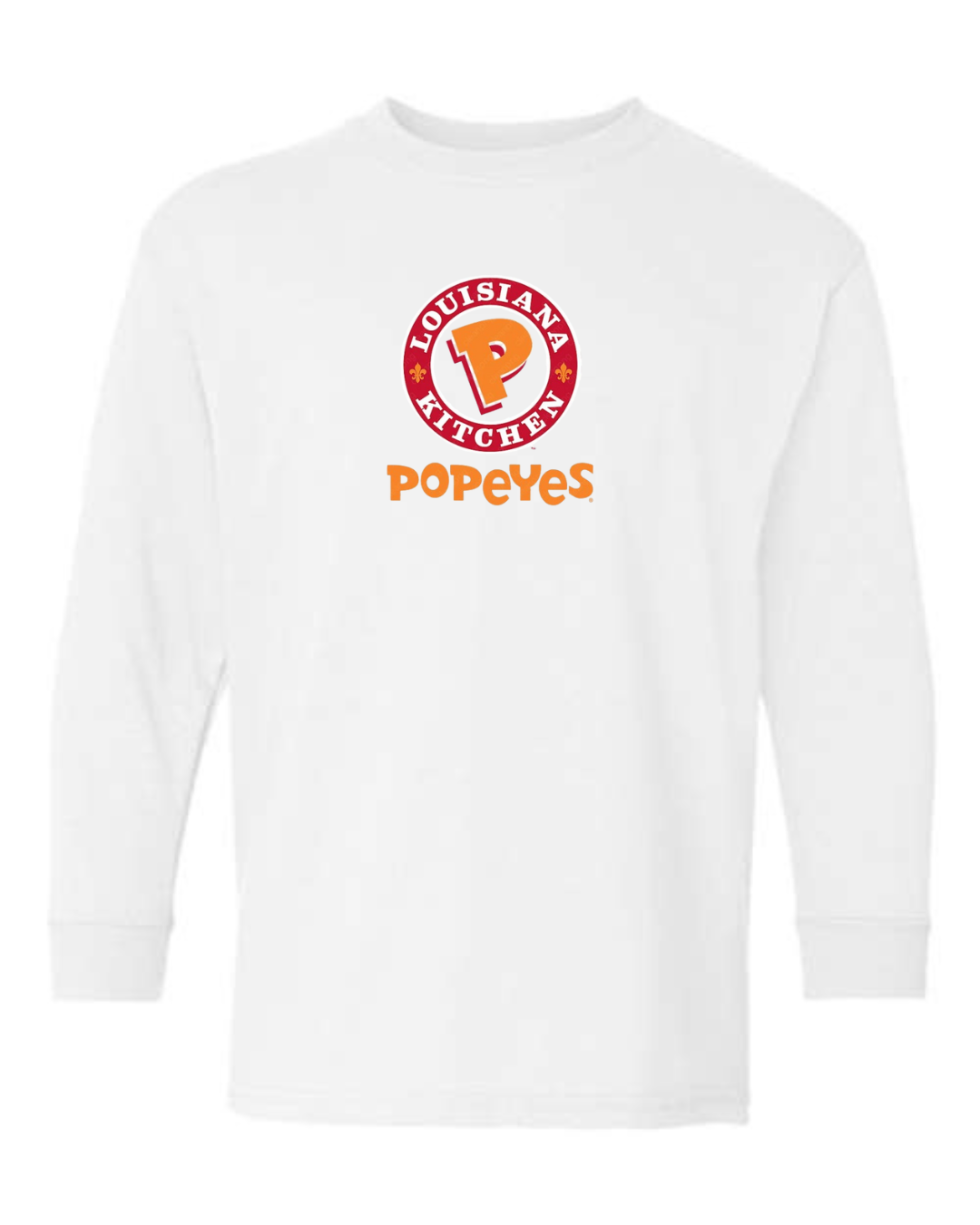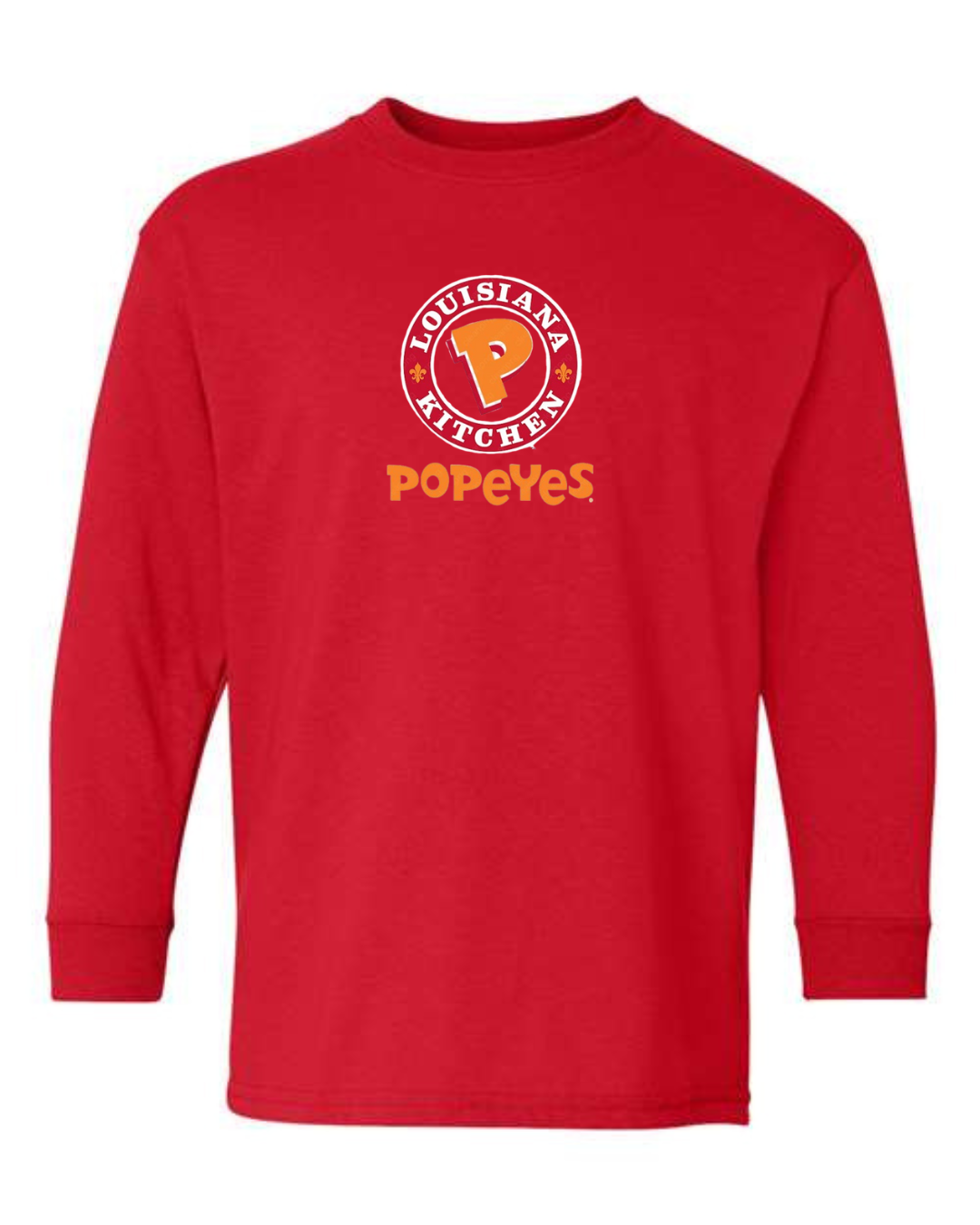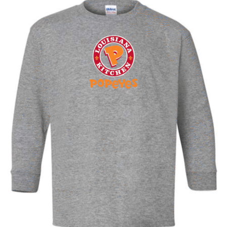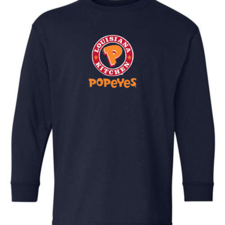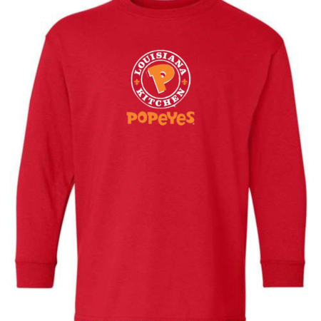 Bold, fun, and instantly recognizable, this youth Popeyes logo long sleeve shirt features the classic Popeyes Louisiana Kitchen emblem on the front for a clean, playful look. Perfect for kids who love iconic food brands and casual streetwear style, this long sleeve tee is great for everyday wear.