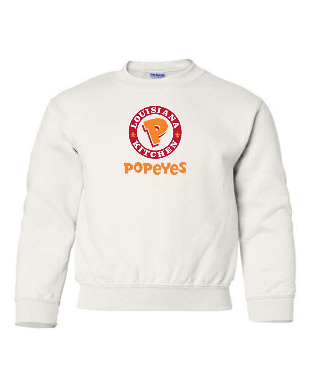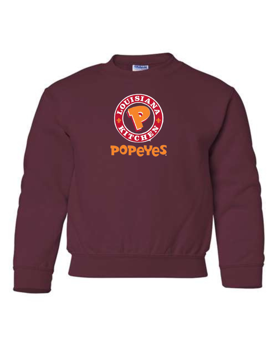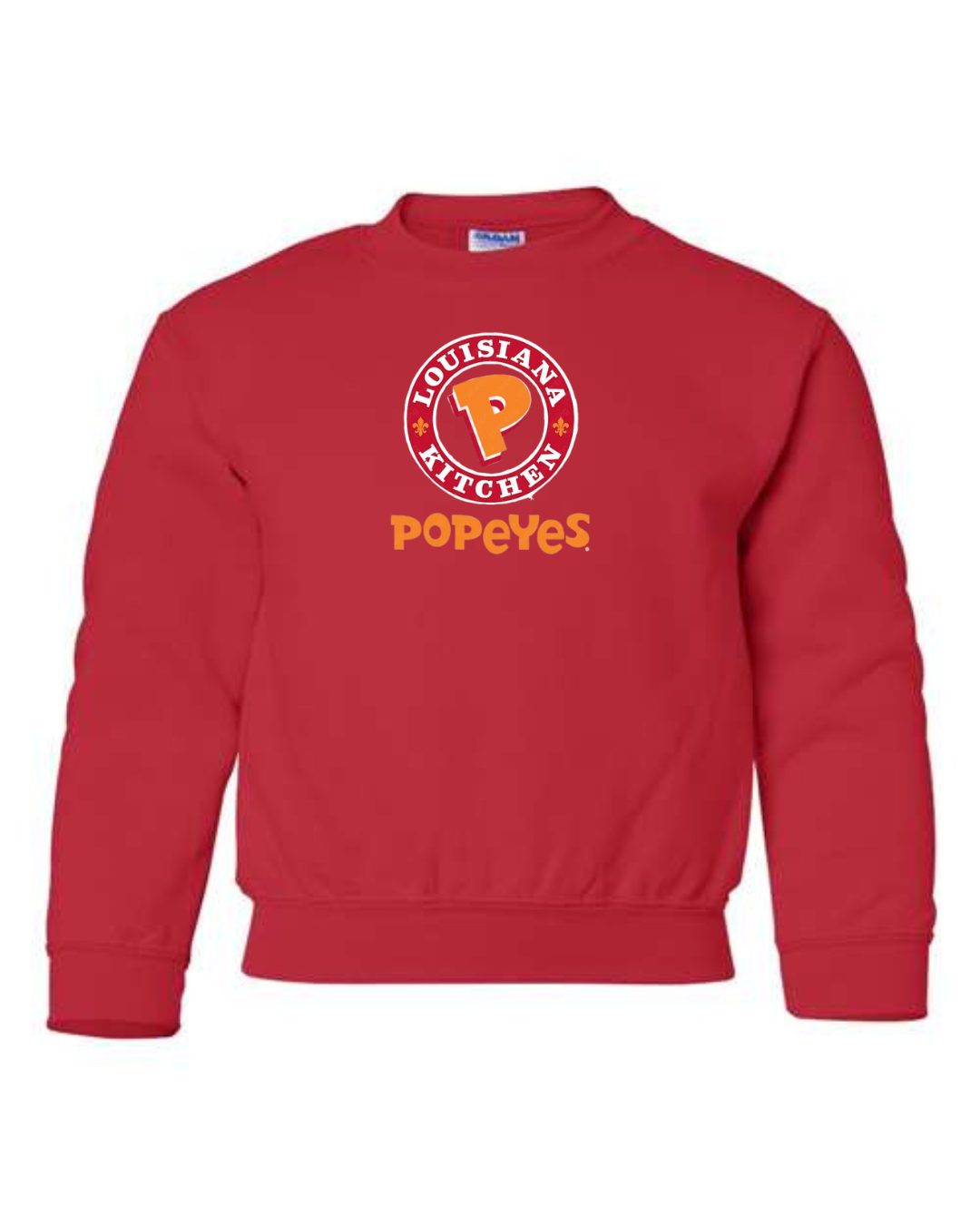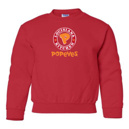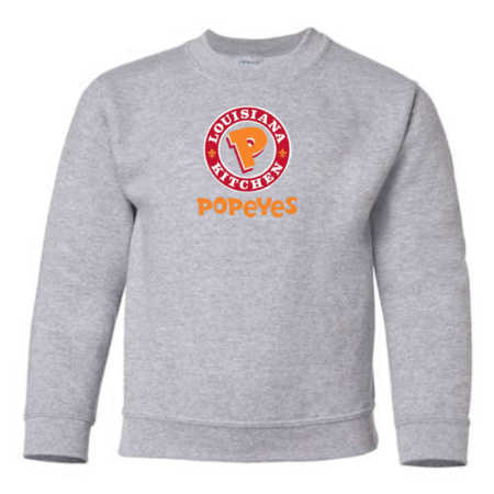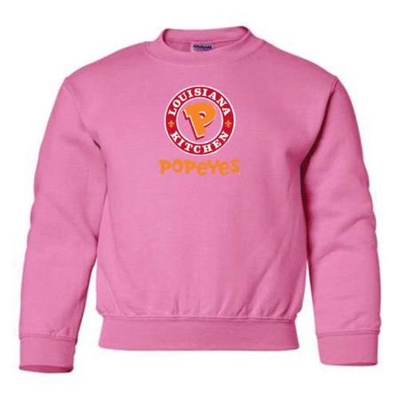 Add bold, fun flavor to your child’s everyday style with this Youth Popeyes Louisiana Kitchen Logo Inspired Sweatshirt. Featuring a vibrant circular logo-style graphic inspired by Popeyes, this sweatshirt is perfect for kids who love playful designs and iconic food-brand style.