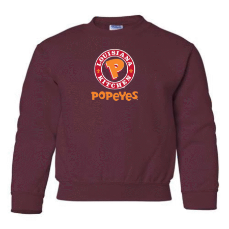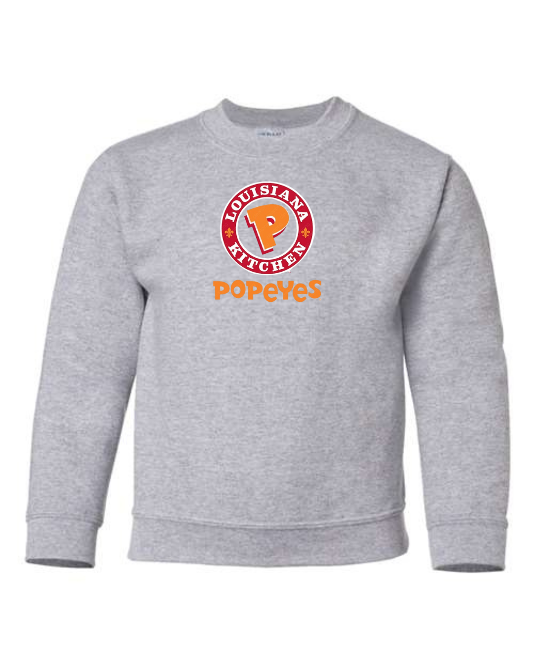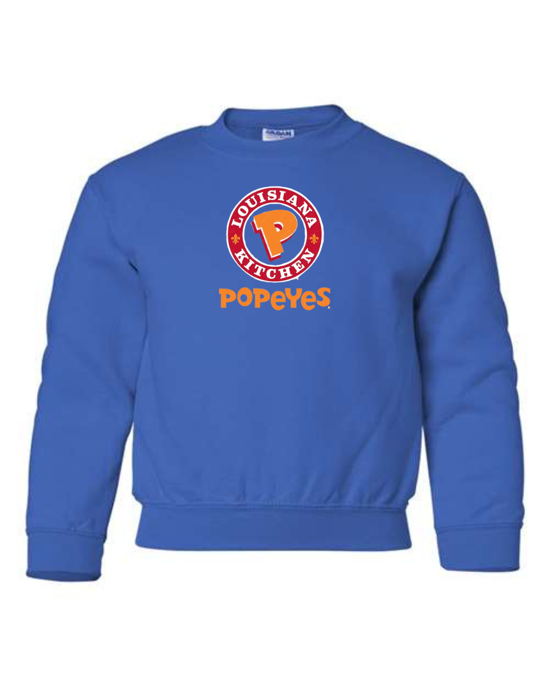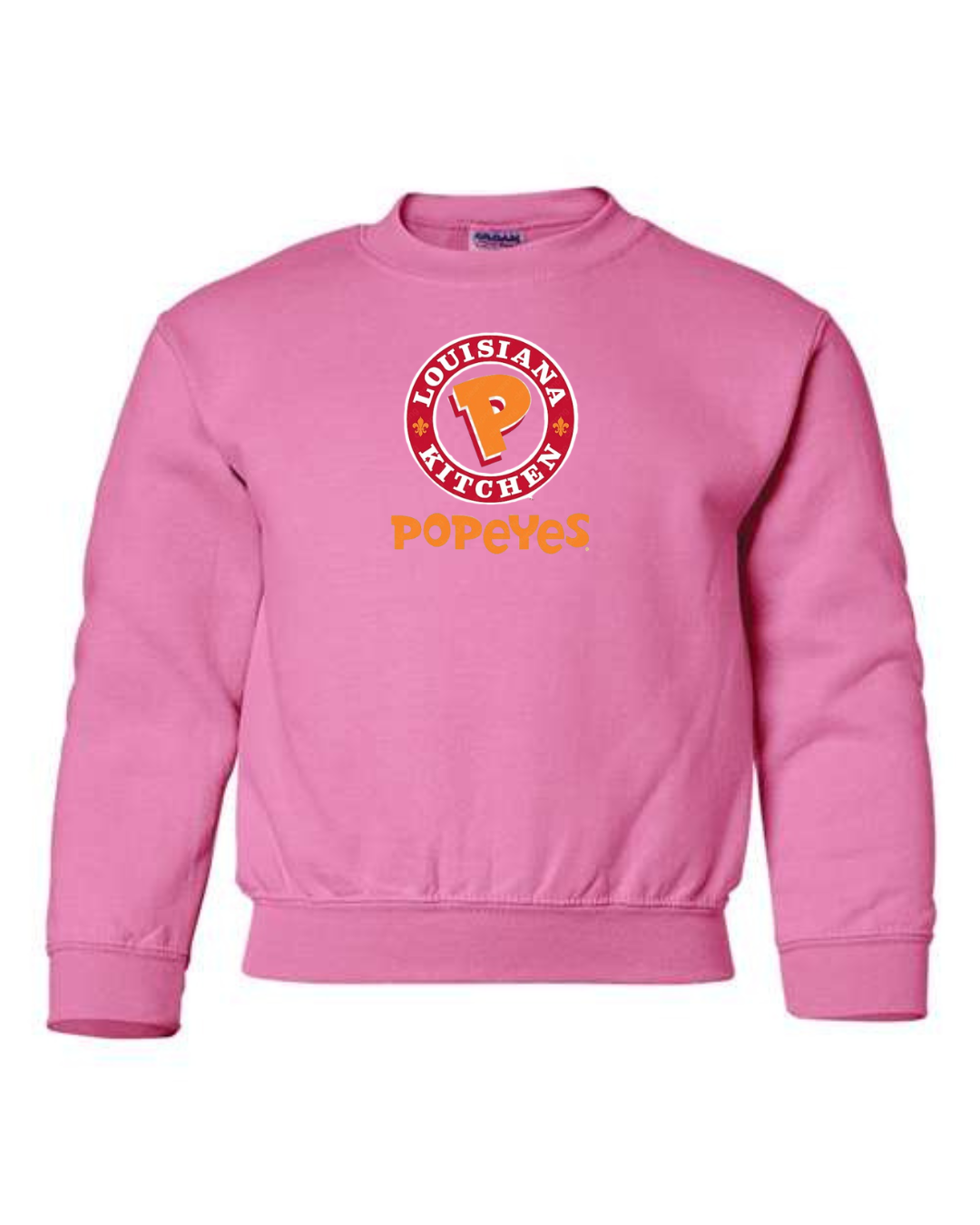 Add bold, fun flavor to your child’s everyday style with this Youth Popeyes Louisiana Kitchen Logo Inspired Sweatshirt. Featuring a vibrant circular logo-style graphic inspired by Popeyes, this sweatshirt is perfect for kids who love playful designs and iconic food-brand style.