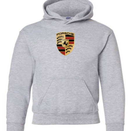 Give young car enthusiasts a premium, sporty look with this Porsche-inspired youth hoodie. Featuring an iconic crest-style front logo design, this hoodie blends legendary sports car culture with modern streetwear—perfect for kids who love performance cars and bold fashion.