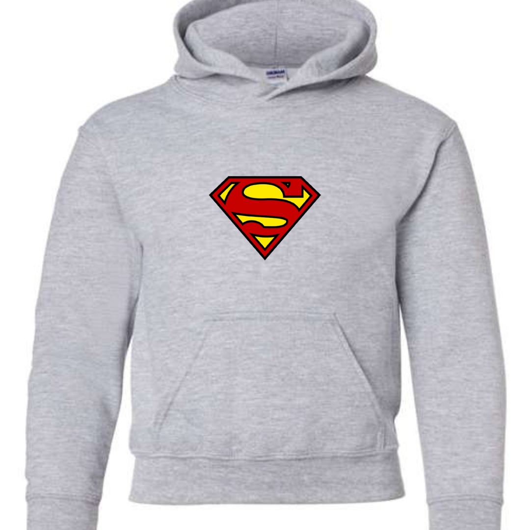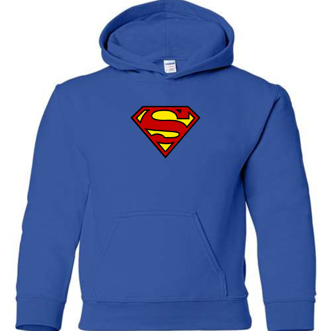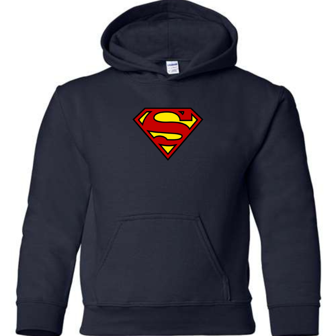 Let kids show off heroic style with this Superman-inspired youth hoodie. Featuring a bold and iconic superhero-style front emblem, this hoodie is perfect for young fans who love comic characters and action-inspired streetwear.