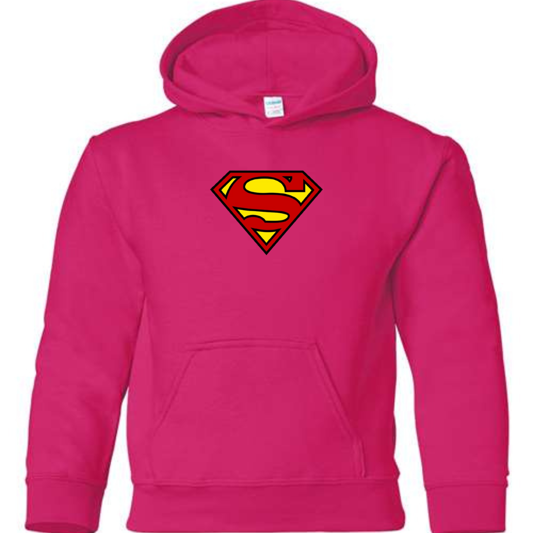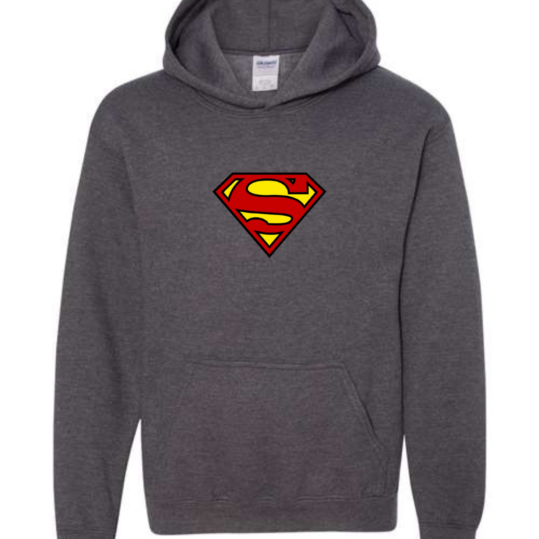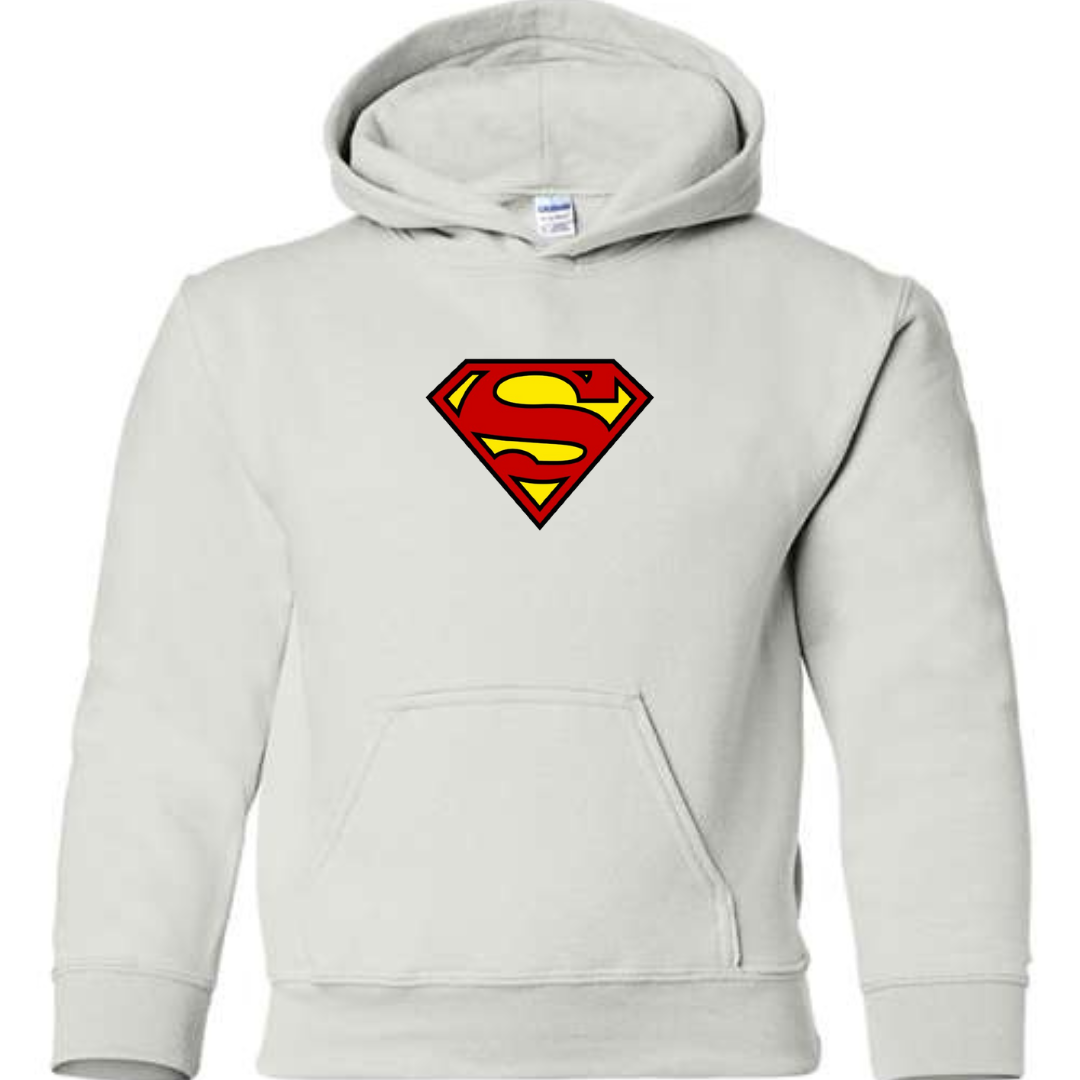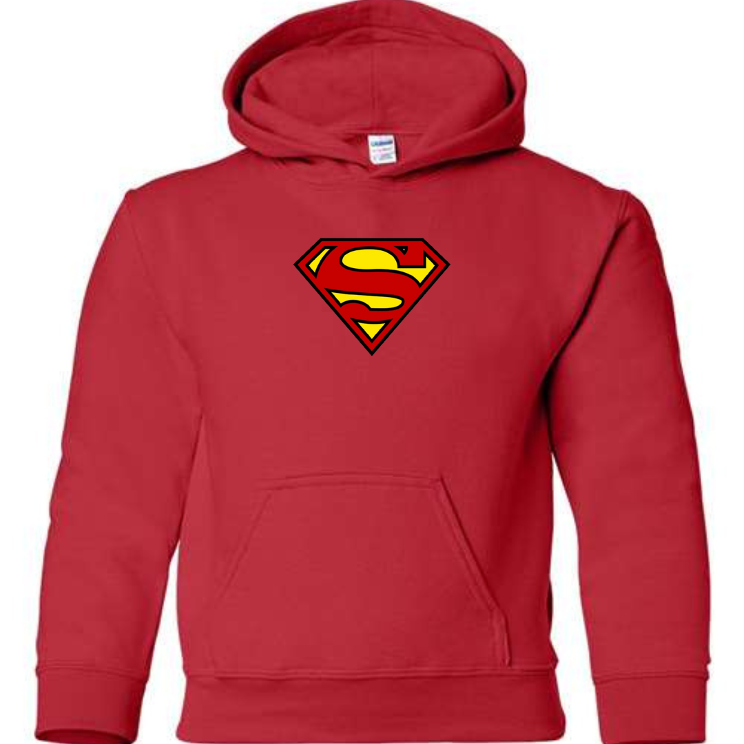 Let kids show off heroic style with this Superman-inspired youth hoodie. Featuring a bold and iconic superhero-style front emblem, this hoodie is perfect for young fans who love comic characters and action-inspired streetwear.