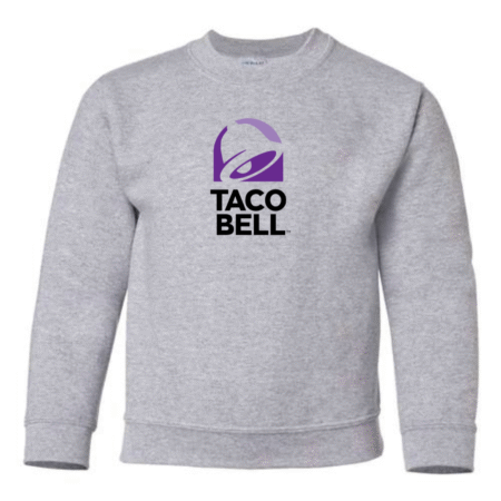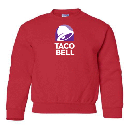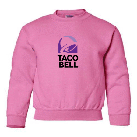Add a fun, bold vibe to everyday outfits with this Youth Taco Bell Logo Inspired Sweatshirt. Featuring a clean, modern logo-style graphic inspired by Taco Bell, this sweatshirt is perfect for kids who love playful designs and casual streetwear style.