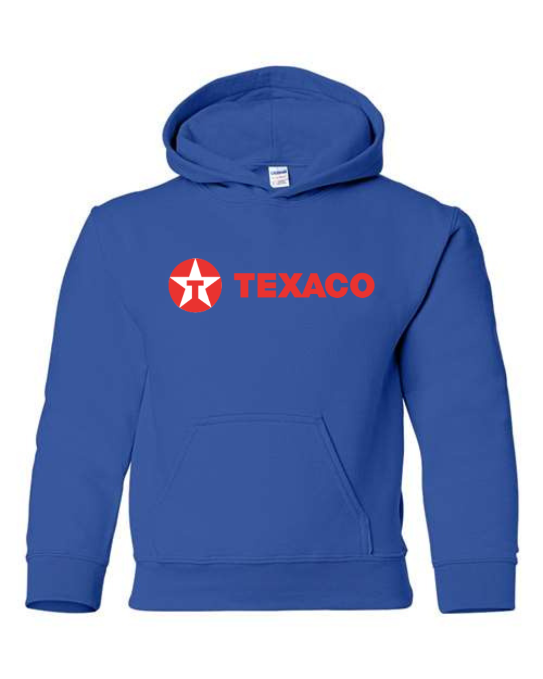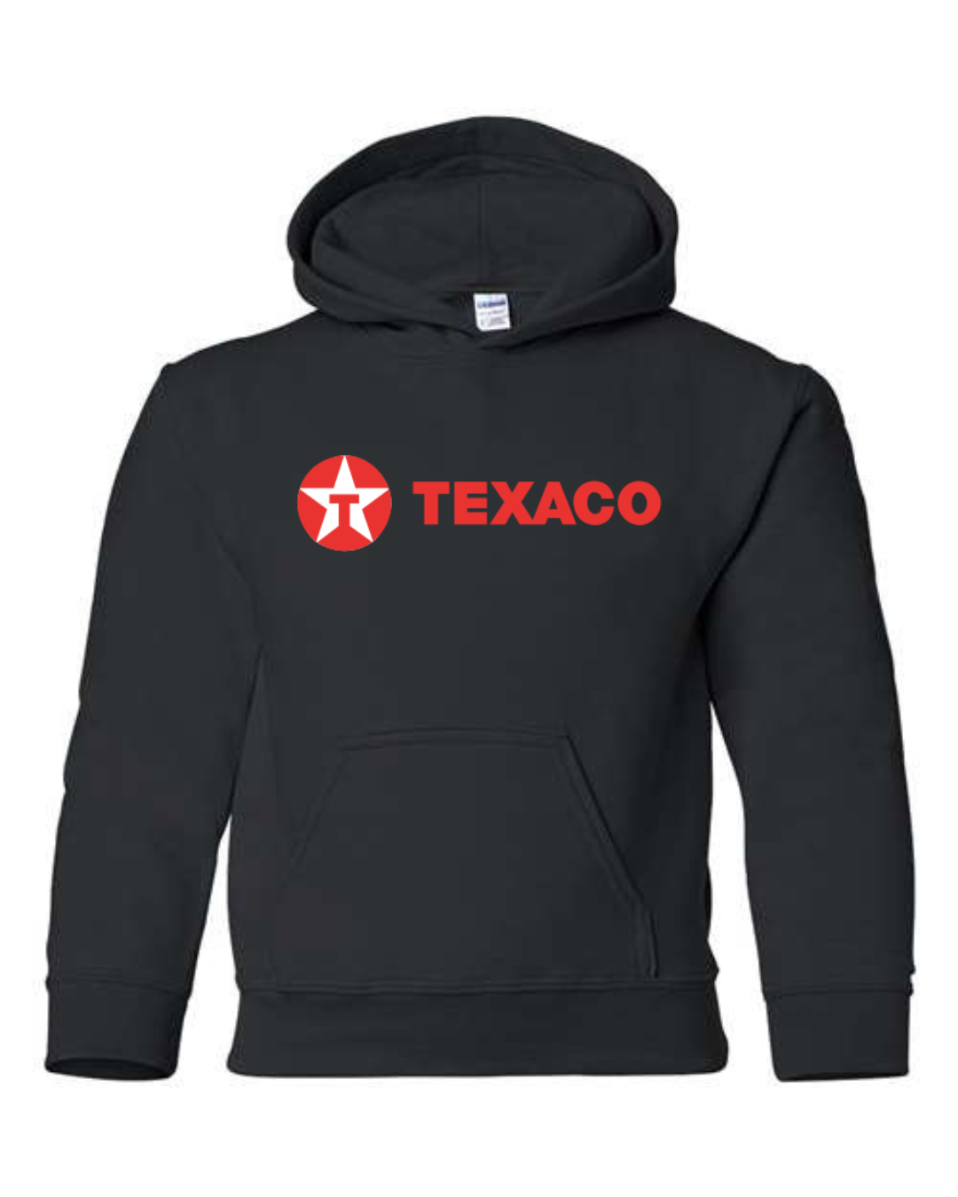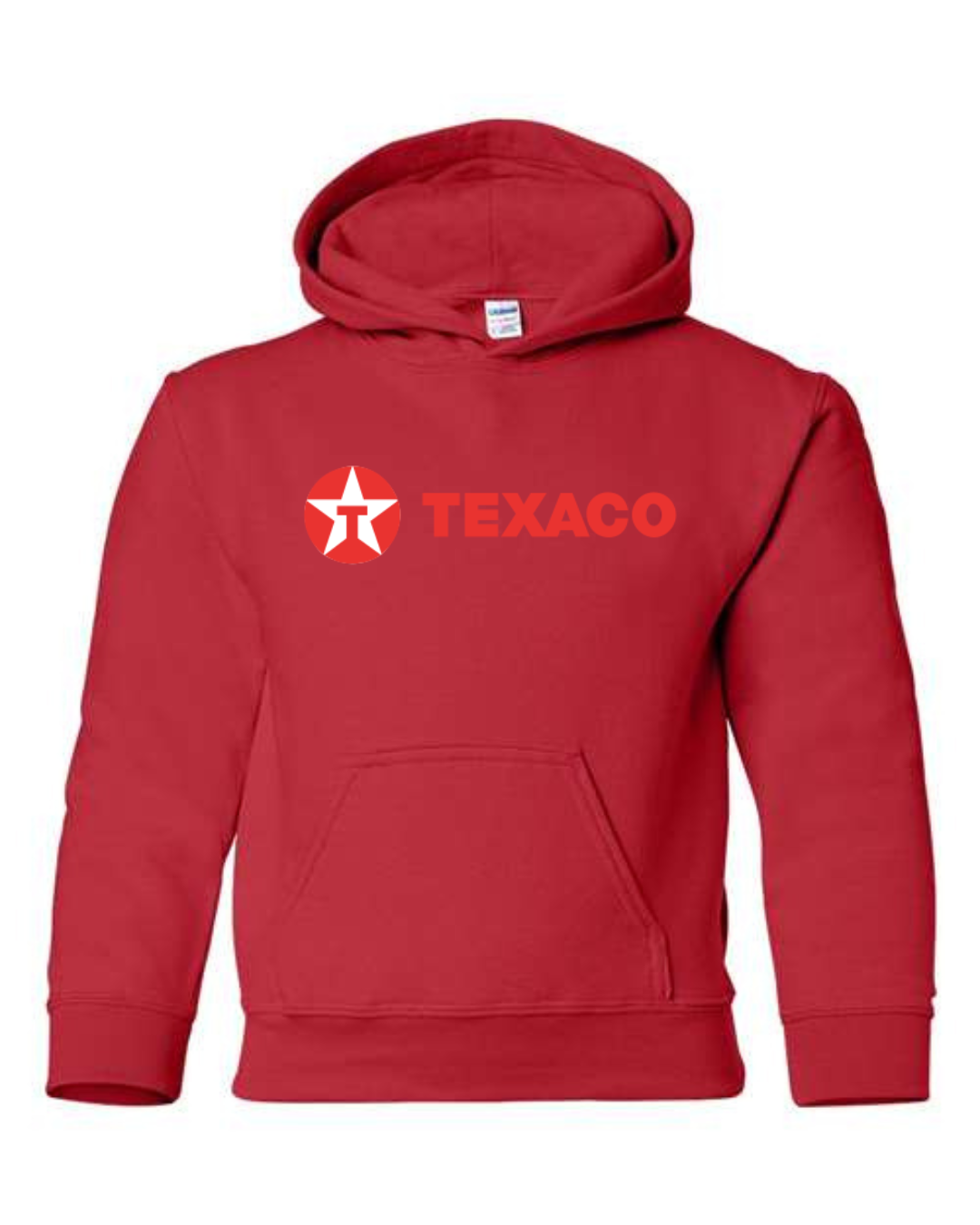 Give kids a bold, retro-inspired look with this Texaco-inspired youth hoodie. Featuring a classic fuel-brand style front logo, this hoodie blends vintage Americana vibes with modern streetwear—perfect for kids who love iconic brands and standout designs.