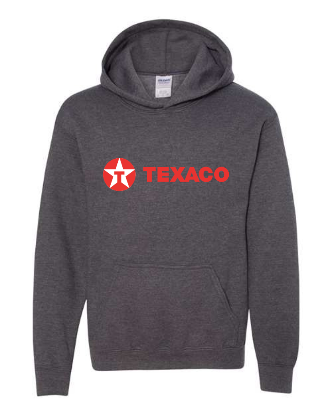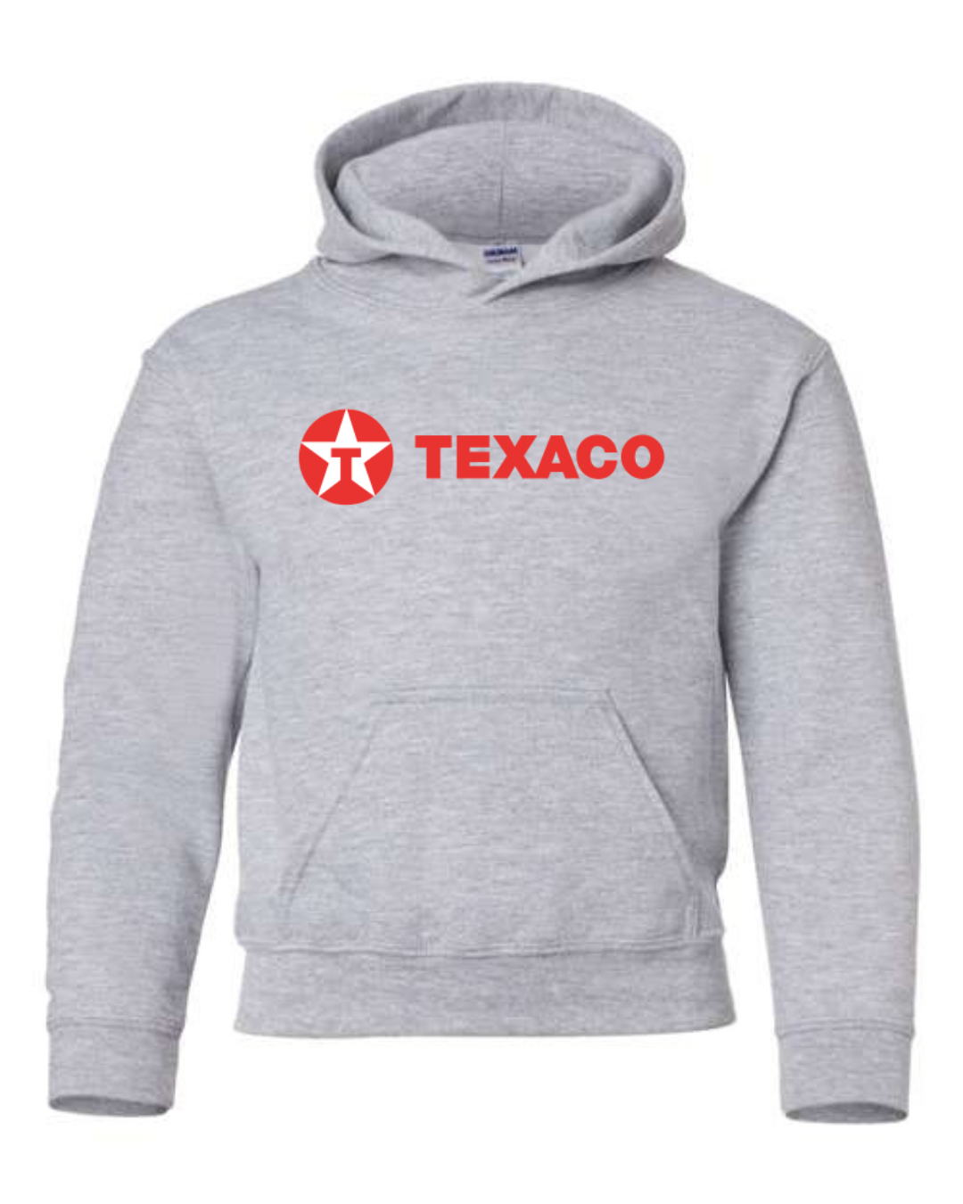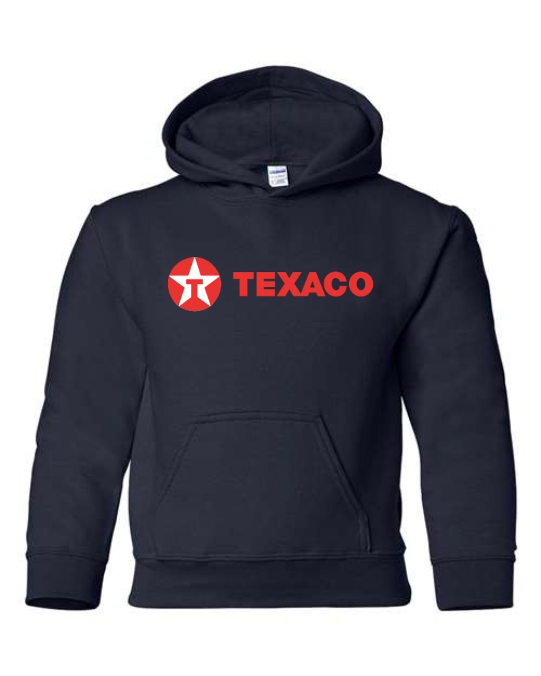 Give kids a bold, retro-inspired look with this Texaco-inspired youth hoodie. Featuring a classic fuel-brand style front logo, this hoodie blends vintage Americana vibes with modern streetwear—perfect for kids who love iconic brands and standout designs.